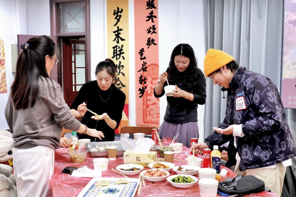 致辞结束后,师生共同品尝亲手包制的饺子。暖香四溢,笑语盈堂,如家庭围炉般亲切温暖。这场亲手制作、共享美味的饺子宴,不仅暖胃,更加暖心,凝聚着艺院大家庭的团圆之情。